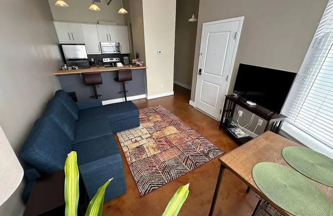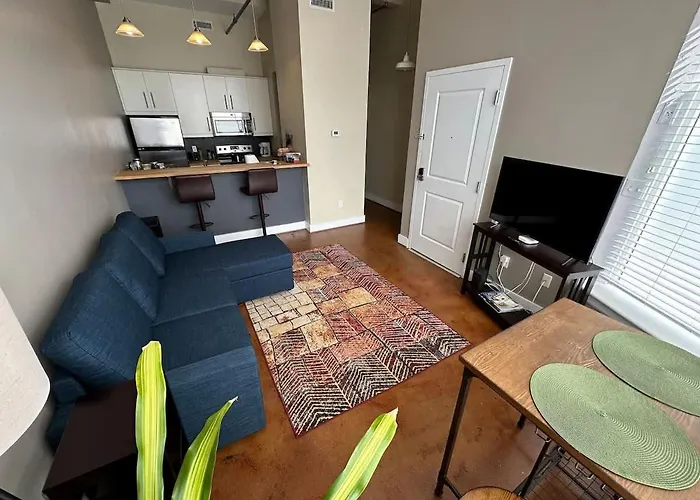The apartment provides a full kitchen fitted with an oven and a dishwasher. Chic walkable apt with rooftop views is in close proximity to the nearest bus stop Elm & 5th.